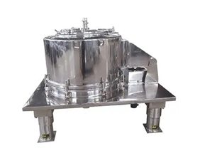 PD系列吊袋離心機結(jié)合國情自行設(shè)計制造的新型離心機,其驅(qū)動電機既可采用離合器啟動,也可由變頻調(diào)速系統(tǒng)控制,啟動平穩(wěn),通過三角帶將動力傳遞給轉(zhuǎn)鼓,帶動轉(zhuǎn)鼓使轉(zhuǎn)鼓自身軸線高速旋轉(zhuǎn),形成離心力場,待分離的物料經(jīng)上部加料管進入高速旋轉(zhuǎn)的轉(zhuǎn)鼓內(nèi),在離心機力場作用下,物料均布在轉(zhuǎn)鼓壁上進行離心過程,液相透過固相物料及濾袋的縫隙,經(jīng)轉(zhuǎn)鼓孔甩至機殼空腔,從底盤出液口排出,固相物料則被截留在濾袋內(nèi)。停機后,開啟機蓋(借助特殊設(shè)計的平衡助力裝置),拔出蘭蓋鎖緊栓,用特制的吊具將濾餅吊出機外設(shè)定地點卸料,即完成一個工作循環(huán)。機蓋上配有洗滌管,可以對物料進行洗滌。